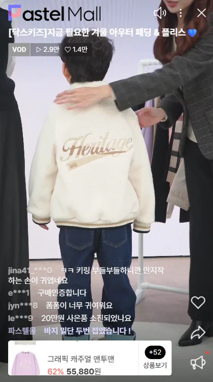 파스텔몰은 키즈 전문 패션 플랫폼에서 패밀리 패션 플랫폼으로 성장하고 있습니다. 약 10개월 전, 메이저 브랜드 위주로 라이브를 진행했다면, 매출 볼륨이 커지면서 현재는 파스텔몰의 전 브랜드를 라이브를 통해 판매하고 있는데요 앞으로 단일 방송 매출 1억을 넘어 2억, 3억까지 높여 나가는 것이 목표라고 말하는 파스텔몰 라이브! 많은 관심 부탁드립니다.