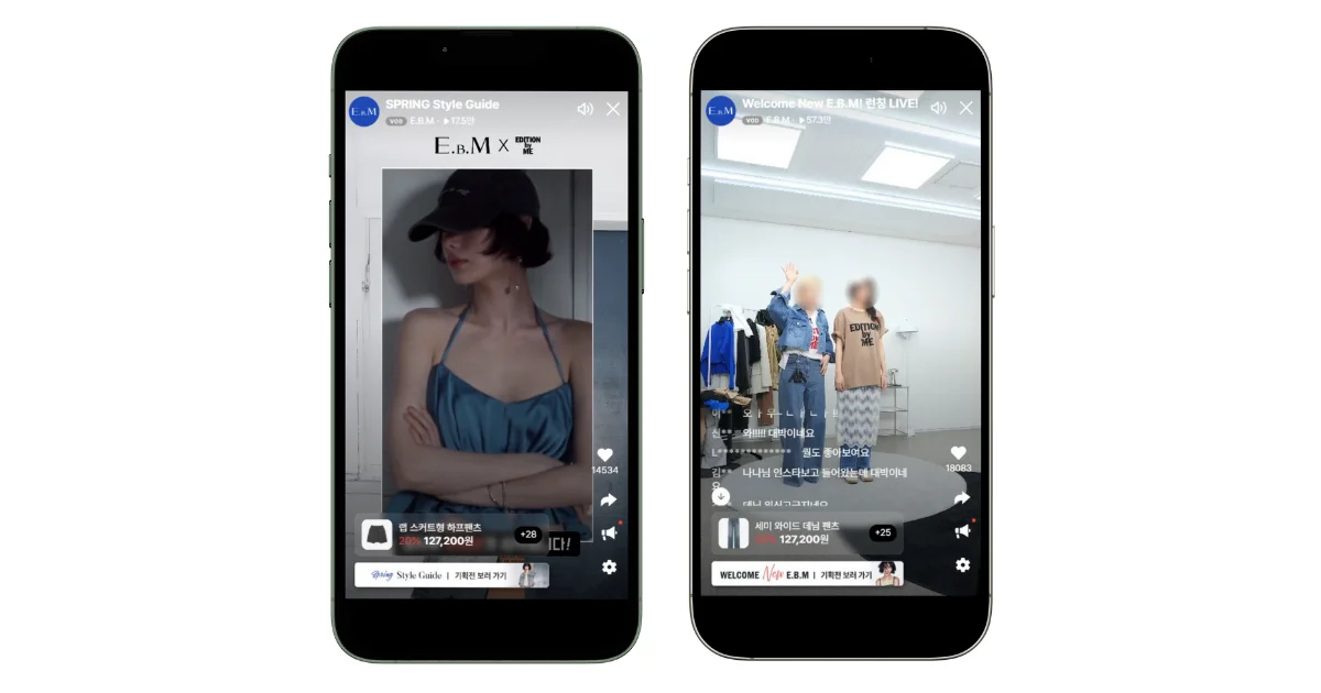 옷은 뷰티나 식품 카테고리보다 단가가 높고 컬러, 사이즈 등의 고려사항이 있기 때문에 온라인으로 판매하기에 다소 어려움이 있을 수 있습니다. 따라서 E.B.M은 제품 착용핏을 실시간으로 보여주고, 전문 스타일리스트가 상품에 대해 생생하게 설명해줄 수 있는 ‘라이브커머스’를 시작하기로 결정했습니다.