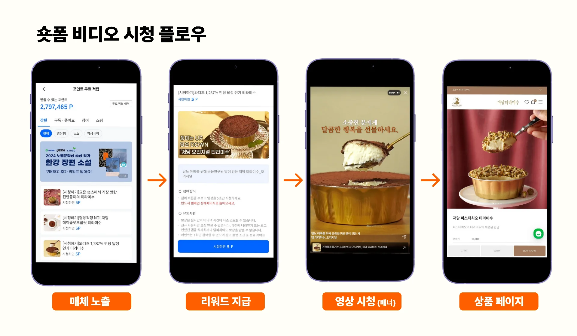 특히 숏폼 비디오의 초반 5초~16초 내 베네핏인 혜택이 등장하고 이를 시청자 인지하고 정확한 액션으로 유도될 수 있도록, 시청-CTA(유도액션)-아웃링크 등 시청 경험의 플로우를 잘 설계하는 것이 숏폼 마케팅의 성공을 결정짓습니다.