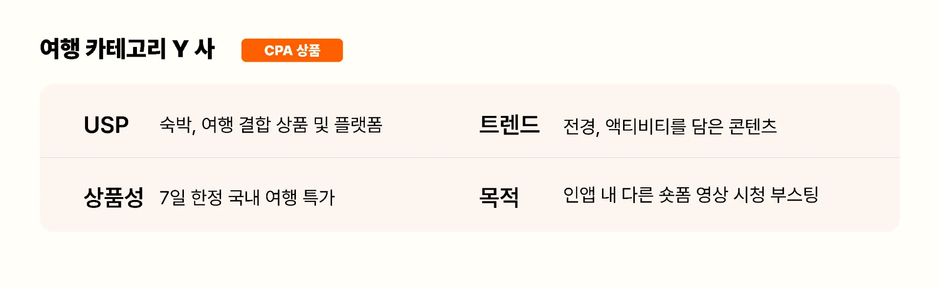 둘째, 우리 브랜드 제품이 시장 내 고유한 셀링 포인트가 있는 경쟁력을 갖춘 상품으로 숏폼 마케팅의 승부를 보는 것인가