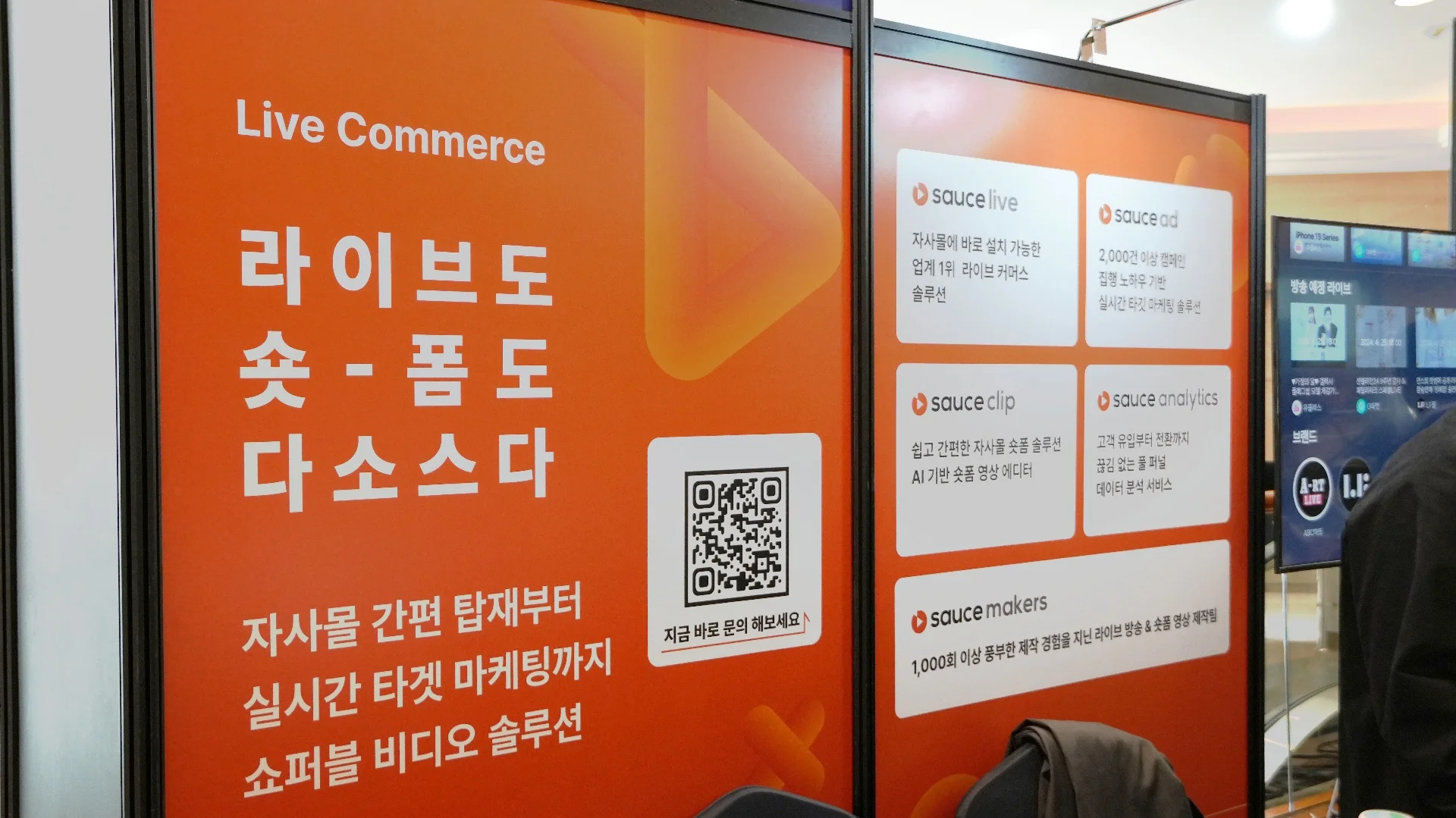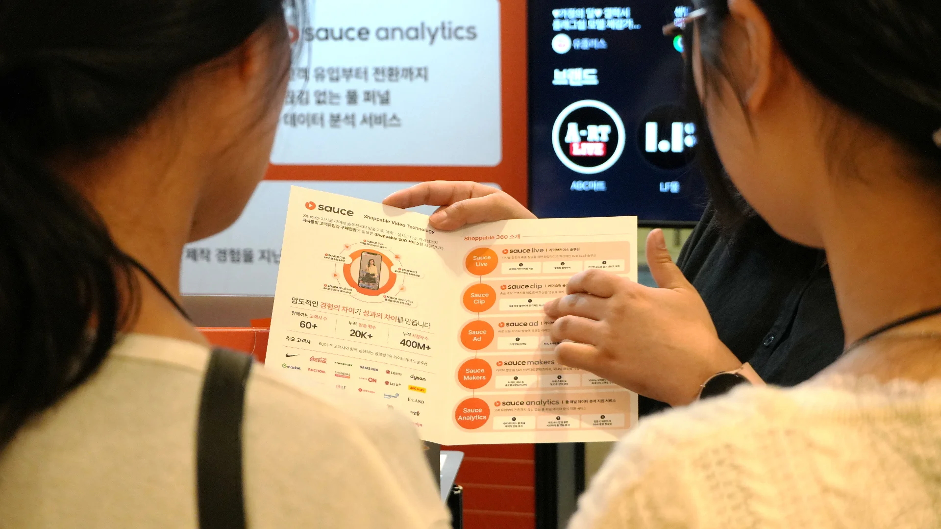 소스(Sauce)는 자사몰에 바로 설치할 수 있는 라이브 커머스 솔루션 소스라이브 (Sauce Live)로 라이브 커머스 업계 1위의 자리를 굳건히 지키고 있습니다. 실시간 타깃 마케팅 솔루션 소스애드, AI 기반 숏폼 영상 에디터 소스 클립 (Sauce Clip), 유입부터 전환까지 풀 퍼널 데이터 분석 서비스 소스애널리틱스 (Sauce Analytics), 라이브 방송 전문 제작팀 소스메이커스(Sauce Makers) 등 쇼퍼블 360 비디오가 제공하는 비즈니스 확장의 매력을 현장에서 실시간으로 살필 수 있었습니다.