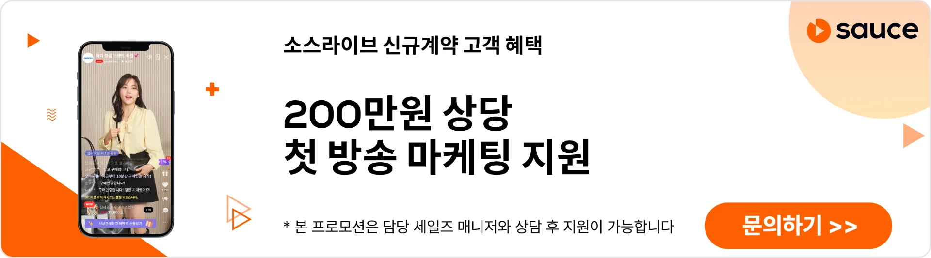 만약 4월 25일 목요일 당일에 행사에 참석하지 못 하였더라도 첫 라이브 방송 진행을 검토하고 있으시다면, 4월 한정으로 제공되었던 마케팅 비용 지원 프로모션을 5월까지 연장된 소스 (Sauce) 프로모션 혜택을 만나보시기 바랍니다. 라이브에 필요한 200만원 상당의 마케팅 비용을 지원해 드립니다! CMTS 2024 행사 전용 특별 혜택을 놓치지 마세요!