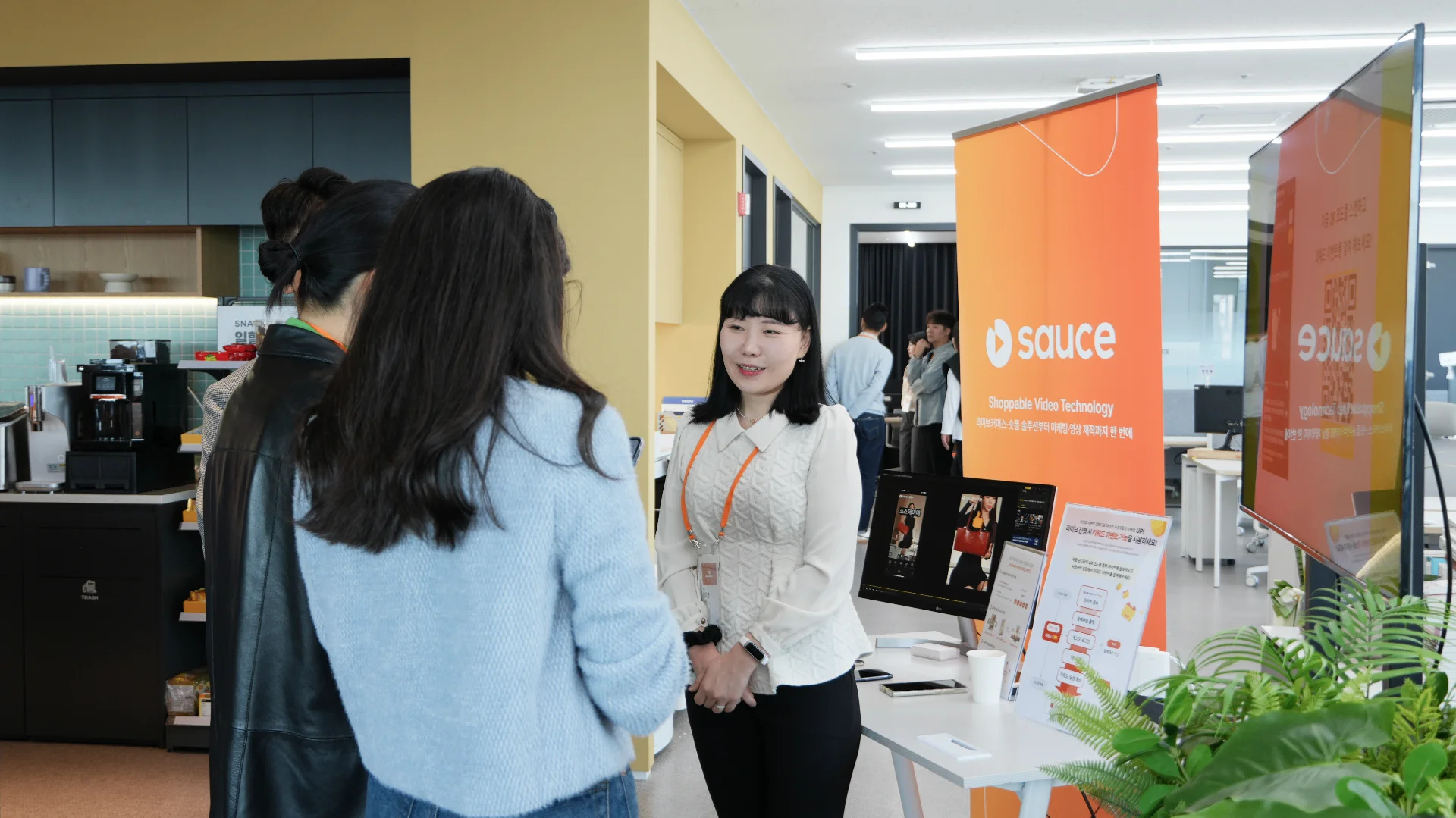 또한 소스데이 행사장 한편에는 새로 출시된 Sauce의 리워드 기능과 AI 기반 숏폼 편집기 시연 부스도 진행되었습니다. 참석자 분들은 기획자 최가영님의 자세한 설명을 들으며 새로운 기능을 가장 빠르게! 직접 사용해보실 수 있었습니다.