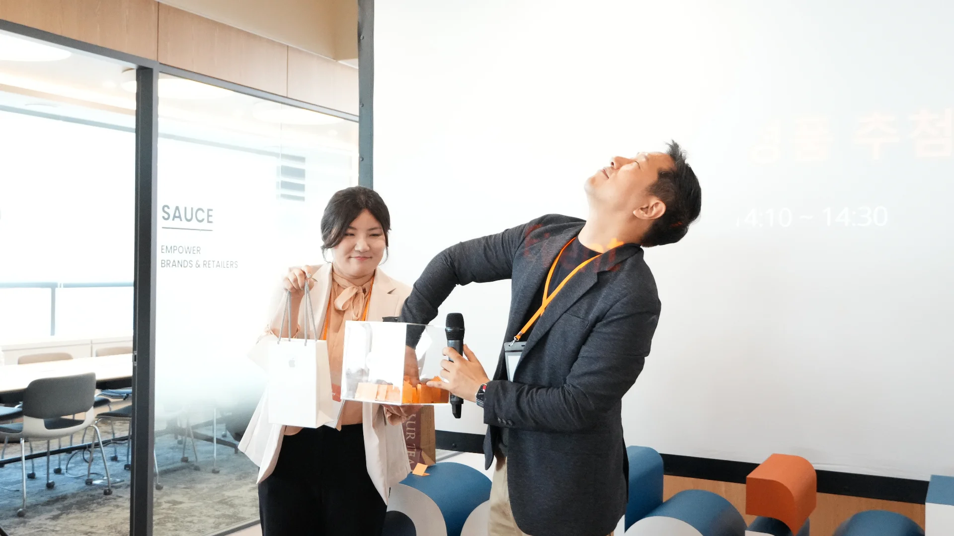 고객사의 성장을 돕는 Sauce의 Shoppable 360 솔루션 소개 및 재미있는 퀴즈도 함께 진행해, 마지막 세션이었음에도 불구하고 청중들의 집중도와 관심이 굉장히 높았습니다.
