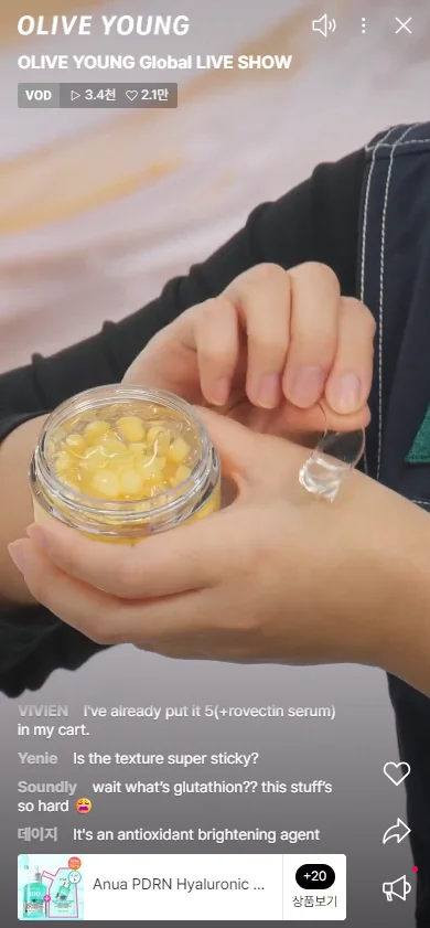 이번 방송은 올리브영 글로벌몰 고객을 대상으로 진행되었습니다. 쇼호스트 설희와 올리브영N성수 하루 뷰티컨설턴트가 함께 출연해 K-뷰티 제품을 직접 시연하고, 피부 타입별 맞춤 추천부터 실시간 Q&A까지 글로벌 시청자들과 활발하게 소통했습니다.
