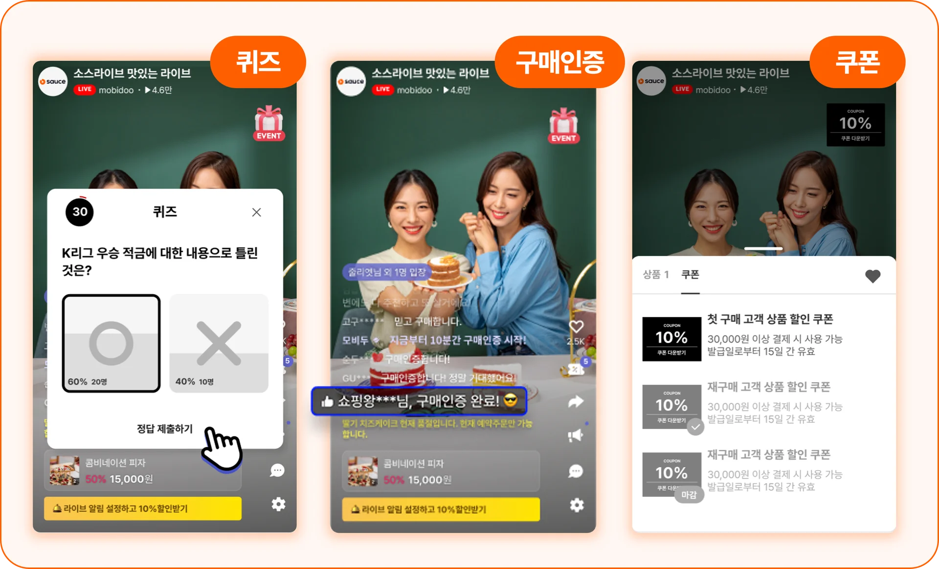 시청자는 정답을 맞히기 위해 방송에 더 몰입하게 되고, 자연스럽게 상품에 대한 이해도와 관심도가 올라갑니다. 이로 인해 구매 전환 효과도 함께 상승하게 됩니다.