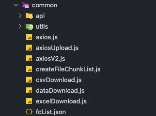 예를 들어, Vue 2에서는 src/common 폴더 아래에 API, 유틸리티 함수, 공통 컴포넌트 등이 뒤섞여 있었고, 각 페이지의 컴포넌트와 서비스 코드 역시 일관성 없이 흩어져 있었습니다. 도메인별 컴포넌트 구분도 모호하고, 유틸 함수와 API 코드도 common/utils, common/api에 느슨하게 나누어져 있었습니다.